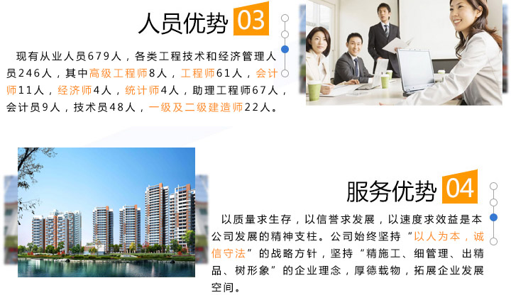質(zhì)量求生存,以信譽(yù)求發(fā)展,以速度求效益是本公司發(fā)展的精神支柱。公司始終堅(jiān)持“以人為本,誠(chéng)信守法”的戰(zhàn)略方針,堅(jiān)持“精施工、細(xì)管理、出精品、樹形象”的企業(yè)理念,厚德載物,拓展企業(yè)發(fā)展空間。